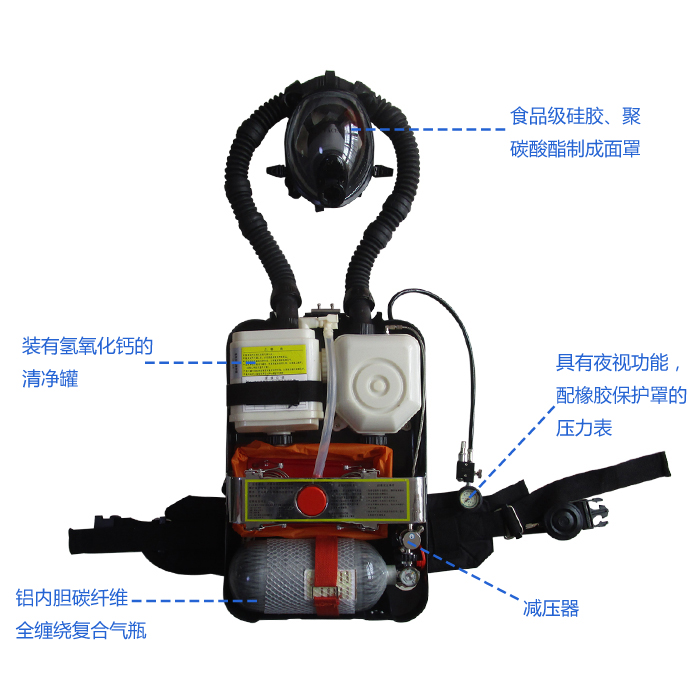 HYZ4型囊式正壓式氧氣呼吸器充分吸收了國內(nèi)外先進技術(shù)特點,并結(jié)合我國煤礦現(xiàn)狀,在產(chǎn)品結(jié)構(gòu)設(shè)計上突出體現(xiàn)了體積小、重量輕、性能可靠、佩帶舒適、使用維護方便等優(yōu)點。從而,更加適合于在井下巷道等窄小環(huán)境中救護使用。主要適用于煤礦、化工、隧道、和高層建筑等在有毒、有害氣體、缺氧的災(zāi)害環(huán)境搶險救災(zāi)、搜索探查工作中佩帶使用。